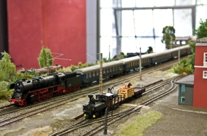 Der Vorteil besteht darin, dass für Modelle und Gleisanlagen weniger investiert werden muss. Es wird eben nicht so viel Material gebraucht. Außerdem erhält man vorzüglich detaillierte Modelle. Natürlich kann man auch sammeln, aber der Betrieb ist das eigentlich reizvolle Geschehen und unter Einbeziehung eines Vorbild-Bahnhofes einer Nebenbahn kann man nahe an ein Modell heran kommen. Und vorbildgerechte Züge kommen auch mit einer Lok und zwei Wagen daher. Und das Rangieren mit Güterwagen macht richtig Spaß. | |