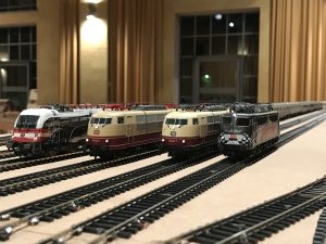 2022 und 2023 konnten wir mit unserer H0-Modulanlage intern in der Tiefstollenhalle spielen. Dabei konnten kleinere Reparaturen durchgeführt und neue Technik ausprobiert werden. | |
